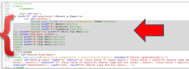 untuk sub menu anda juga tinggal rubah sesuai materi blog anda. Dan jangan lupa jika selesai tekan save template